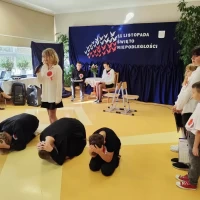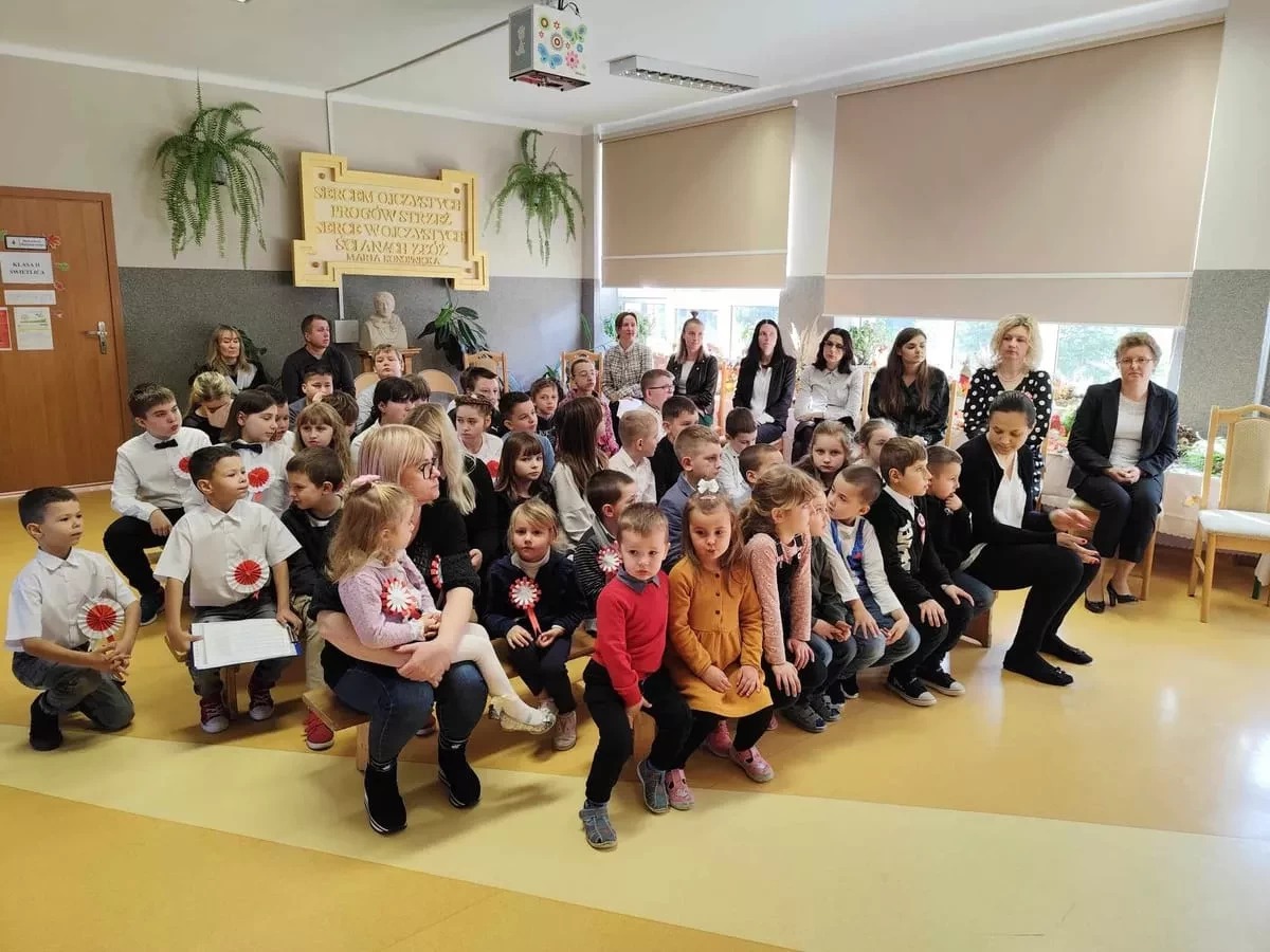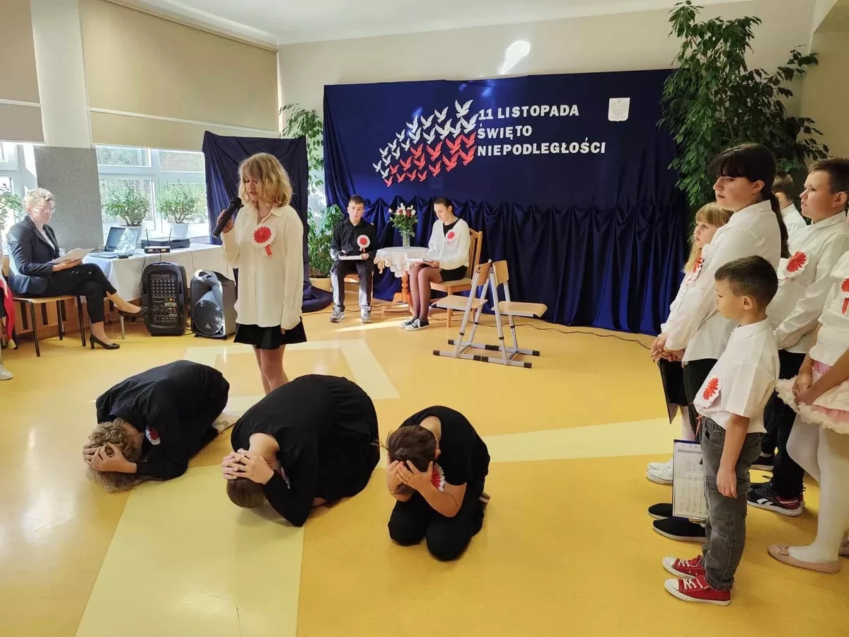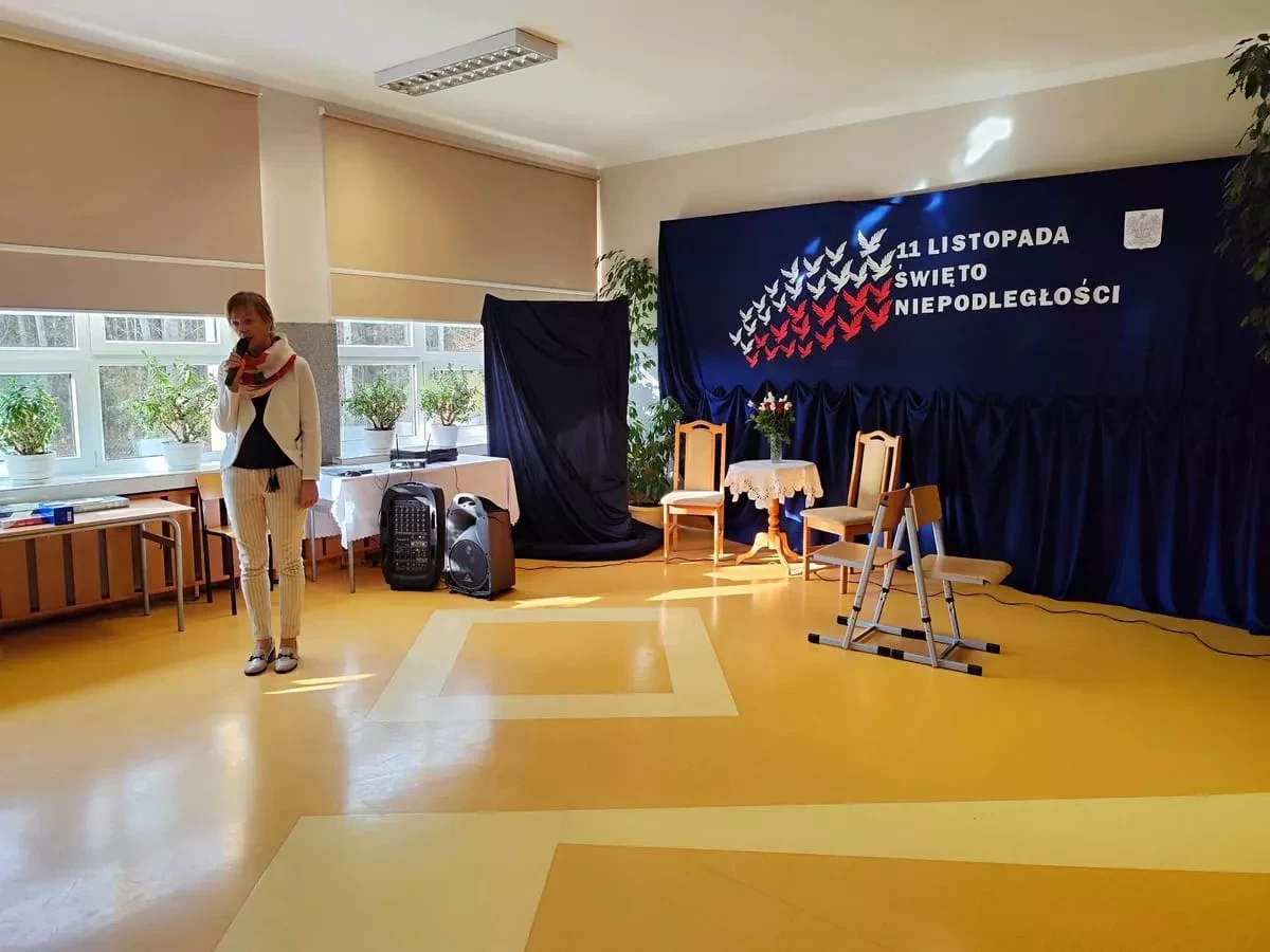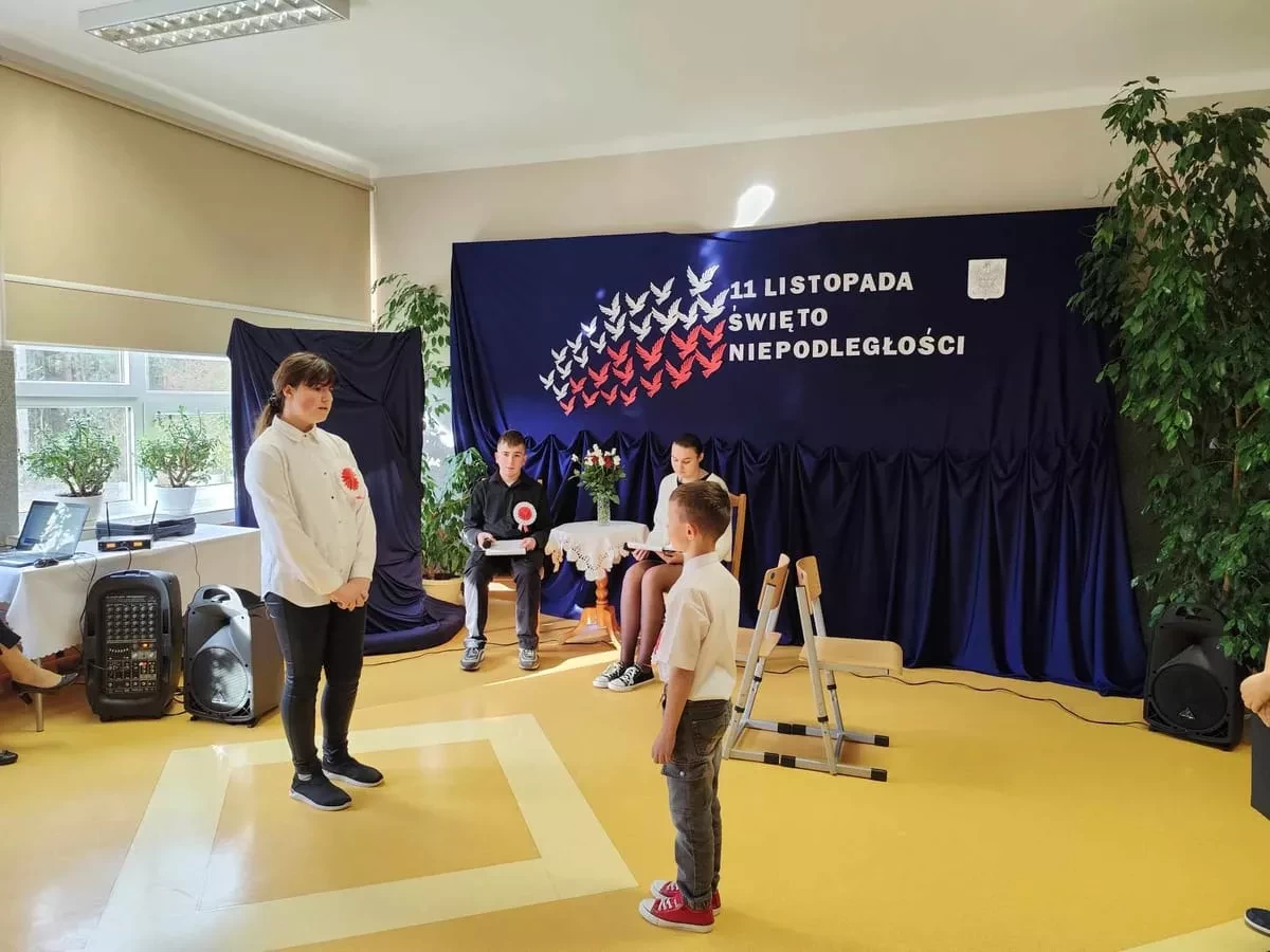W naszej szkole również pamiętamy o bohaterach i ich zasługach dla naszego kraju. Dlatego, jak co roku, 7 listopada 2024r. odbyła się uroczysta akademia z okazji tej ważnej dla Narodu Polskiego rocznicy. Rozpoczęło ją odśpiewanie Mazurka Dąbrowskiego. W dalszej części uroczystości uczniowie klas IV - VIII przedstawili historię niewoli naszej ojczyzny i drogę do odzyskania upragnionej niepodległości. Przekazywane treści przeplatane były patriotycznymi wierszami i pieśniami, co pozwoliło głębiej przeżyć tamte chwile.