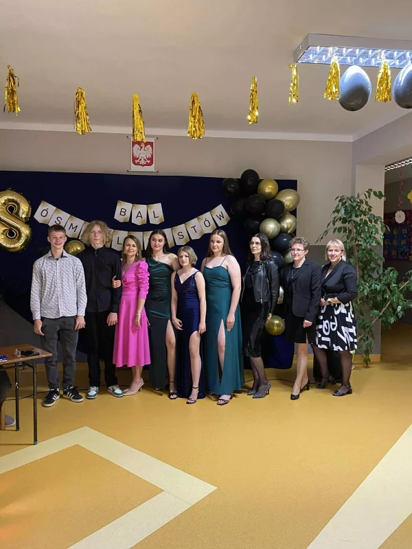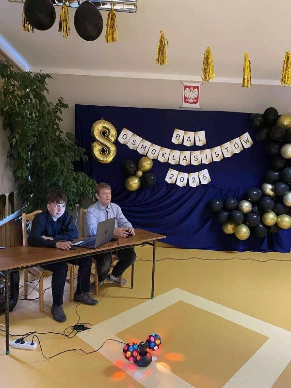 W dniu 12 czerwca 2025 roku odbył się uroczysty bal ósmoklasisty, zorganizowany przez Samorząd Uczniowski przy współpracy z rodzicami uczniów. Wydarzenie miało miejsce na korytarzu szkolnym, który dzięki wspólnemu zaangażowaniu został pięknie udekorowany – balony, światełka i eleganckie ozdoby stworzyły wyjątkową, uroczystą atmosferę.