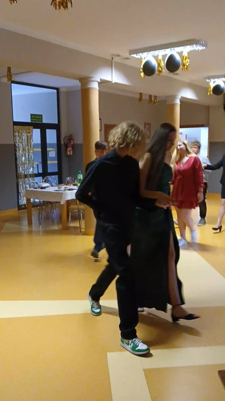 Bal rozpoczął się o godzinie 18:00 tradycyjnym polonezem, który uczniowie odtańczyli z dużym zaangażowaniem i dumą. Następnie rozpoczęła się część nieoficjalna – wspólna zabawa taneczna przy ulubionej muzyce oraz pamiątkowe zdjęcia. Uczniowie mieli także okazję podziękować nauczycielom i wychowawcom za wsparcie oraz wspólnie spędzone lata nauki.