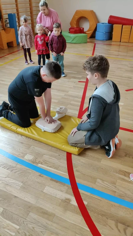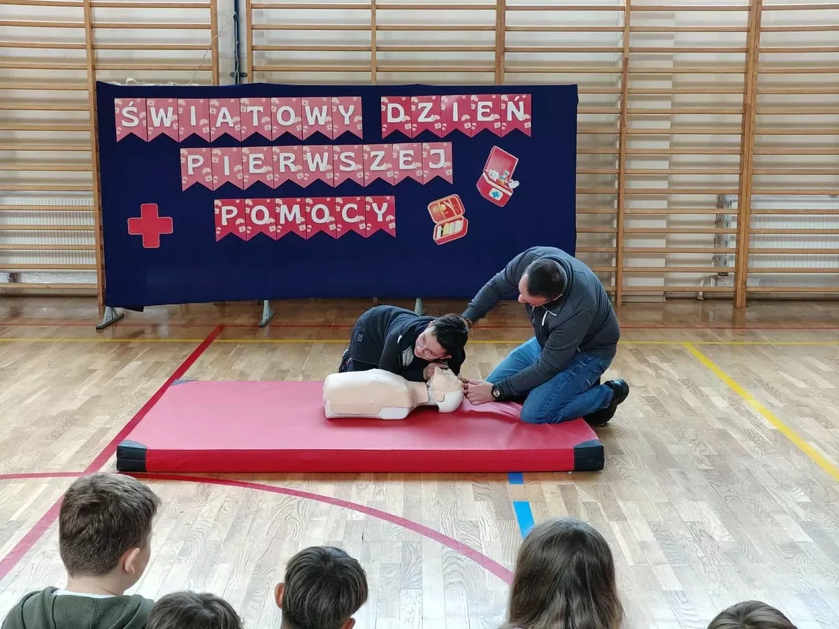 W akcji uczestniczyły oddziały przedszkolne "Jeżyki" i "Pszczółki" oraz uczniowie klas I–VIII. Pokaz i ćwiczenia z zakresu udzielania pierwszej pomocy przeprowadził ratownik medyczny Cezary Witwera, który w przystępny i praktyczny sposób zaprezentował zasady reanimacji.
