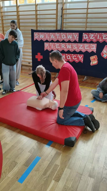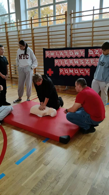 W dniu 16 października 2025 roku nasza szkoła wzięła udział w ogólnopolskiej akcji Bicia Rekordu w Pierwszej Pomocy, organizowanej przez Fundację Wielka Orkiestra Świątecznej Pomocy w ramach Programu Edukacyjnego "Ratujemy i Uczymy Ratować".