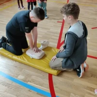 Uczniowie z dużym zaangażowaniem wzięli udział w ćwiczeniach, doskonaląc swoje umiejętności i uświadamiając sobie, jak ważna jest znajomość zasad udzielania pierwszej pomocy.