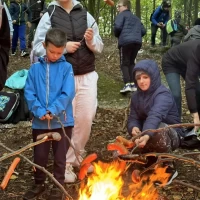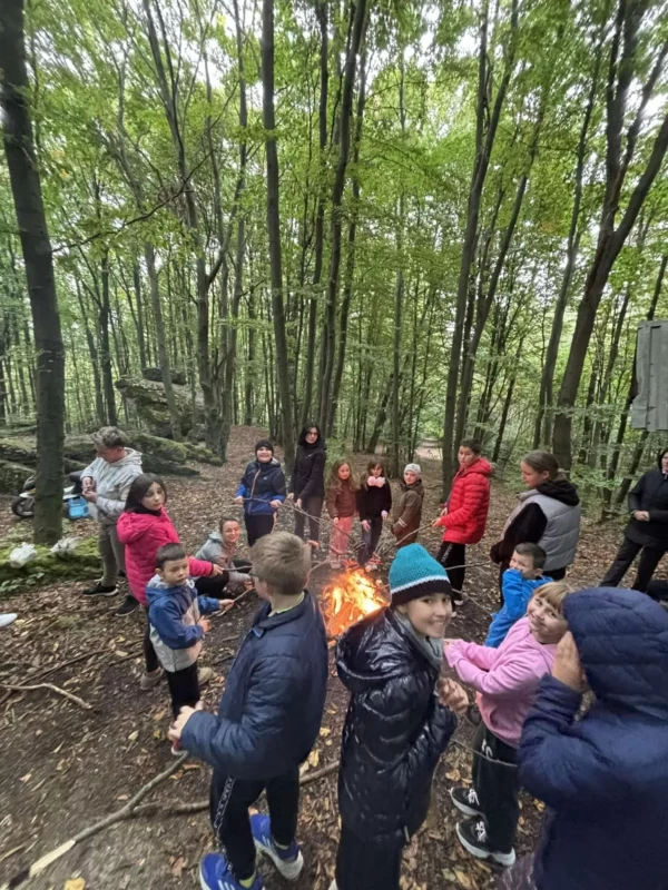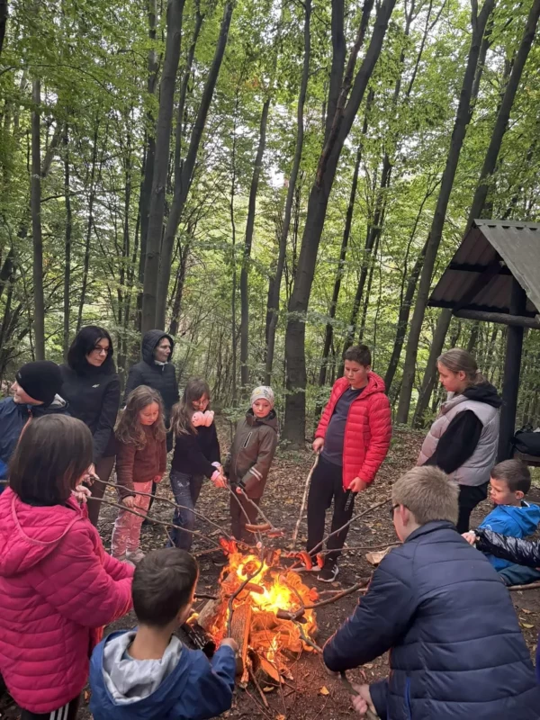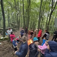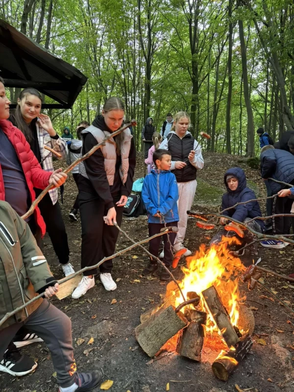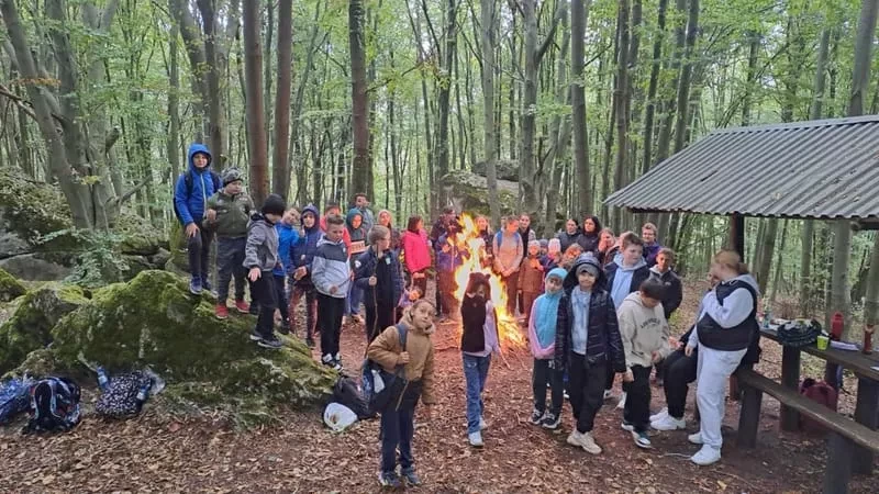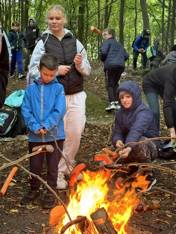 Celem wspólnej wędrówki była integracja klas, zapoznanie dzieci z różnorodnymi formami rekreacji ruchowej, ukazanie możliwości aktywnego spędzania czasu na świeżym powietrzu, dbanie o środowisko naturalne oraz własne zdrowie. Kilka kilometrów marszu nie okazało się trudnym wyzwaniem . Pogoda i dobry humor nas nie opuszczały. Finałem rajdu było wspólne ognisko na Wzgórzu Kamień. Po wielu grach i zabawach rekreacyjnych, zmęczeni ale zadowoleni wróciliśmy do szkoły.