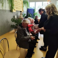 Następnie Przewodnicząca Rady Rodziców w imieniu wszystkich rodziców złożyła serdeczne życzenia nauczycielom i pracownikom szkoły - zdrowia, cierpliwości, satysfakcji z pracy i wielu sukcesów w dalszej działalności zawodowej. W dowód wdzięczności za ich pracę i zaangażowanie w życie szkoły oraz jako wyraz uznania i podziękowania za codzienny trud i życzliwość wobec uczniów przedstawiciele Rady Rodziców wraz z członkami Samorządu Uczniowskiego wręczyli drobne upominki.
