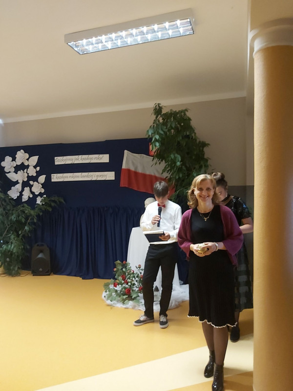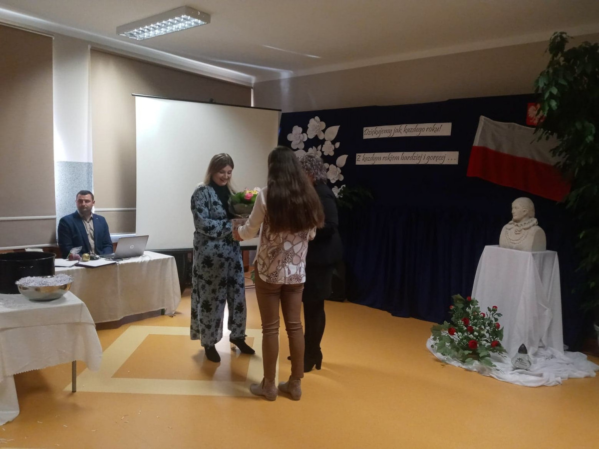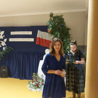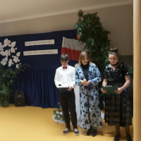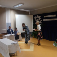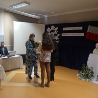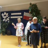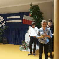 Głos zabrała także przewodnicząca Rady Rodziców P. Bożena Kudełka, dziękując nauczycielom za trud oraz ciężka pracę wkładaną w nauczanie i wychowanie dzieci, a także wręczając nauczycielom upominki oraz piękny bukiet kwiatów na ręce pani Dyrektor.
