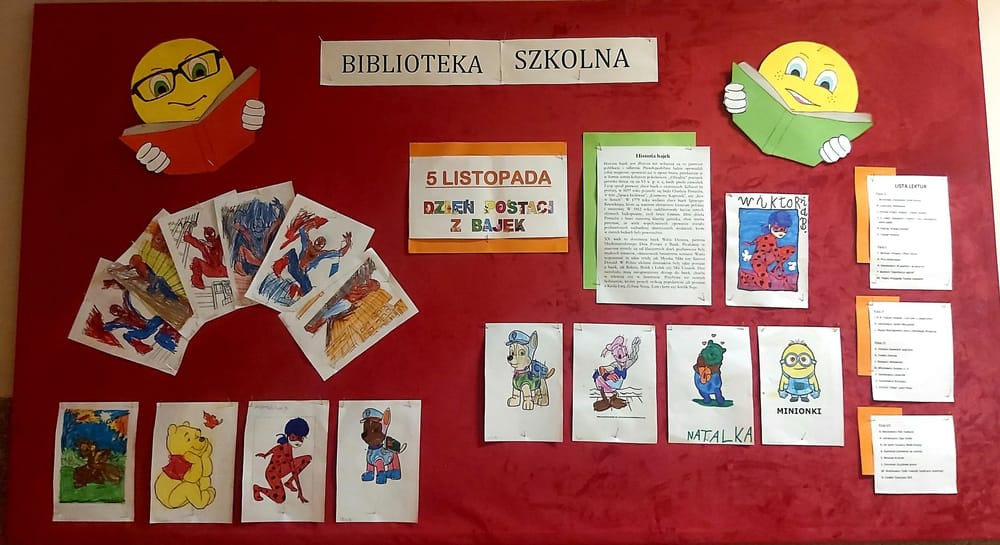Jednym ze świąt nietypowych obchodzonych przez biblioteki szkolne jest przypadający 5 listopada Międzynarodowy Dzień Postaci z Bajek. Z tej okazji w naszej szkole zostały przygotowane tematyczne zajęcia biblioteczne dla uczniów klas 0 – III. Dużą ciekawość dzieci wzbudziły rekwizyty kojarzące się z poszczególnymi bajkami. Uczniowie wykazali się także znajomością wielu bajek rozpoznając je po krótkich fragmentach, a na koniec zajęć pokolorowali swoich ulubionych bohaterów. Wiele radości dostarczyły dzieciom maskotki, które otrzymały w nagrodę za zaangażowanie w wykonywanie kolejnych zadań.