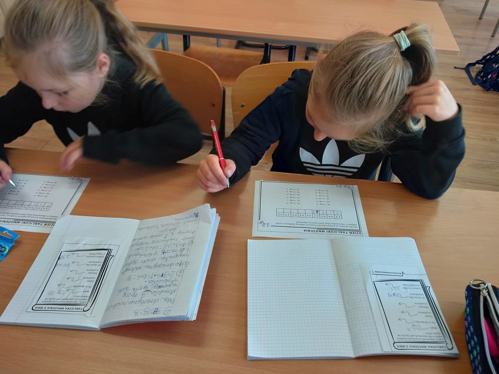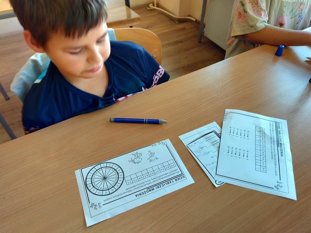 Zabawy z tabliczką mnożenia odbywały się podczas lekcji matematyki. Uczniowie zmagali się z ciekawymi zadaniami wykorzystującymi tabliczkę mnożenia.