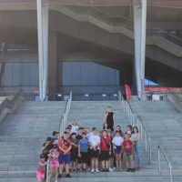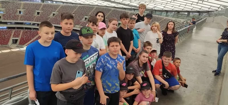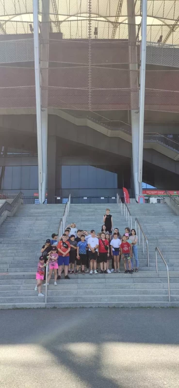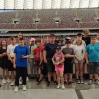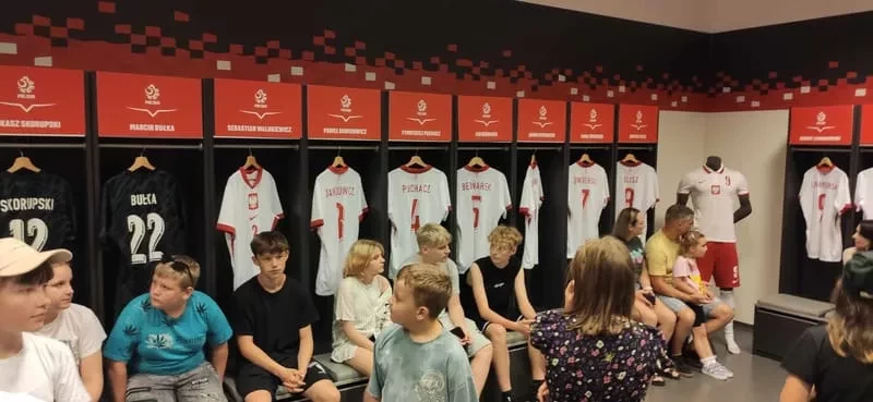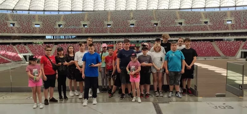 Pierwszym punktem wycieczki był Stadion Narodowy. Mieliśmy okazję zobaczyć najbardziej prestiżowe miejsca stadionu i zasiąść w lożach przeznaczonych dla najważniejszych gości, a także miejsca dla komentatorów. Odwiedziliśmy również zaplecze - szatnię reprezentacji Polski, pomieszczenia odnowy biologicznej, płytę boiska a także trybunę dolną. Każdy poczuł się przez chwilę jak piłkarz reprezentacji Polski. Niektórzy mieli nadzieję spotkać samego Lewandowskiego, ale niestety…… Nie udało się! Może następnym razem.