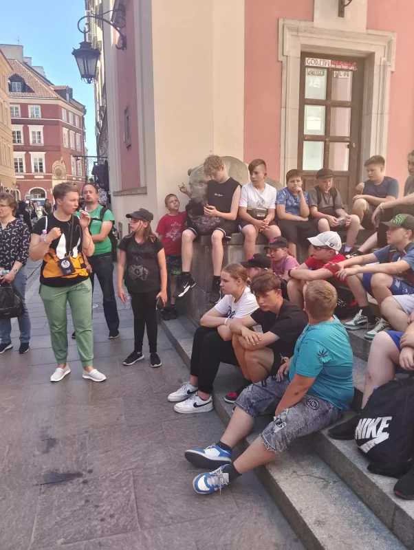 Kolejnym punktem wycieczki było zwiedzanie Starówki - przeszliśmy Traktem Królewskim do Pałacu Kultury i Nauki. Pani przewodnik ciekawie opowiadała, a wszyscy uważnie słuchali. Niejednemu zamarzyło się zamieszkać w Warszawie…. „Na deser” wjechaliśmy na XXX piętro Pałacu Kultury i Nauki, skąd podziwialiśmy przepiękną panoramę Warszawy. Widok był niesamowity! Wycieczka spełniła funkcję edukacyjną oraz integracyjną. Dzieci zmęczone, ale bardzo zadowolone obiecały, że na pewno niedługo odwiedzą stolicę, by poznać więcej jej pięknych zakamarków.