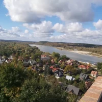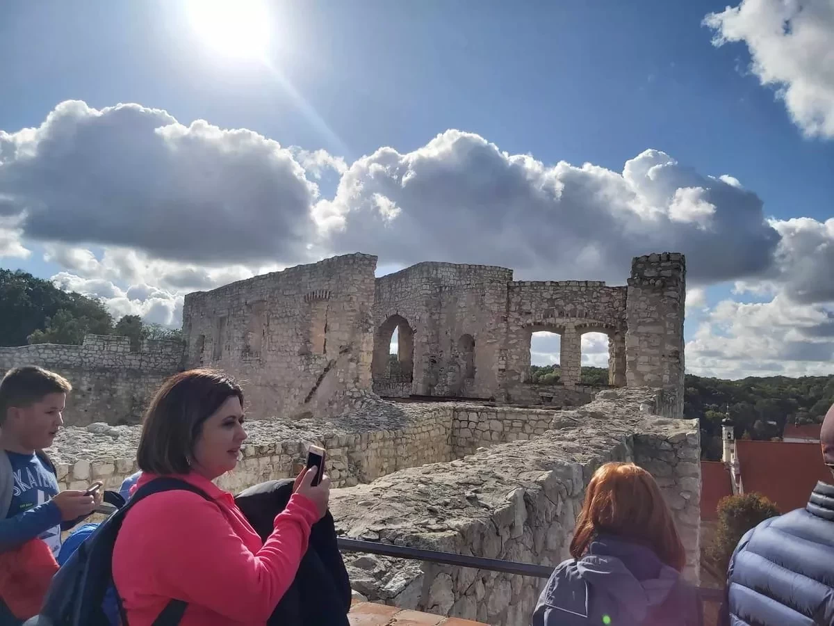 W dniu 17 października 2023 r. uczniowie z klas 5-8 naszej szkoły wspólnie z uczniami ze Szkoły Podstawowej im. M. Romanowskiego w Józefowie wyruszyli na wycieczkę do Kazimierza Dolnego. Po dotarciu na miejsce spotkaliśmy się z przewodnikiem, który opowiedział nam wiele interesujących historii i ciekawostek. Pierwszą atrakcją naszego wyjazdu było przejście wąwozem Korzeniowy Dół, gdzie podziwialiśmy osłonięte w wyniku erozji wodnej korzenie starych drzew oraz warstwy skał lessowych o pięknym, żółtym zabarwieniu. Następnie udaliśmy się na ruiny zamku z XIII wieku, gdzie olśnił nas widok panoramy Doliny Wisły. Kolejnym punktem naszej wyprawy było „wdrapanie się” na Wzgórze Trzech Krzyży zwane inaczej Krzyżową Górą- najważniejszy punkt zwiedzania Kazimierza Dolnego, z którego roztacza się cudowny widok na zabytkowe miasteczko i jego malownicze okolice. Po zejściu z góry udaliśmy się na spacer po Rynku. Oprócz podziwiania architektury tego niezwykłego miejsca, zakupiliśmy pamiątki i oczywiście kazimierskie koguty. Kazimierz Dolny to niezwykle urzekająca miejscowość, bardzo stara, polska osada nad Wisłą. Większość budowli charakteryzuje czerwona dachówka, bielone od zewnątrz ściany i kamienne podmurówki. Wszystkie domy utrzymane są w godnym podziwu porządku, dzięki czemu miasteczko ma specyficzny charakter, urok i wdzięk. Po bardzo aktywnym zwiedzaniu Kazimierza, trochę już zmęczeni poszliśmy do restauracji na smaczny obiad. Ostatnim punktem naszej wycieczki było relaksujące podziwianie nadwiślańskich krajobrazów, płynąc statkiem. Nawet się nie obejrzeliśmy, gdy czas było wracać do domu.