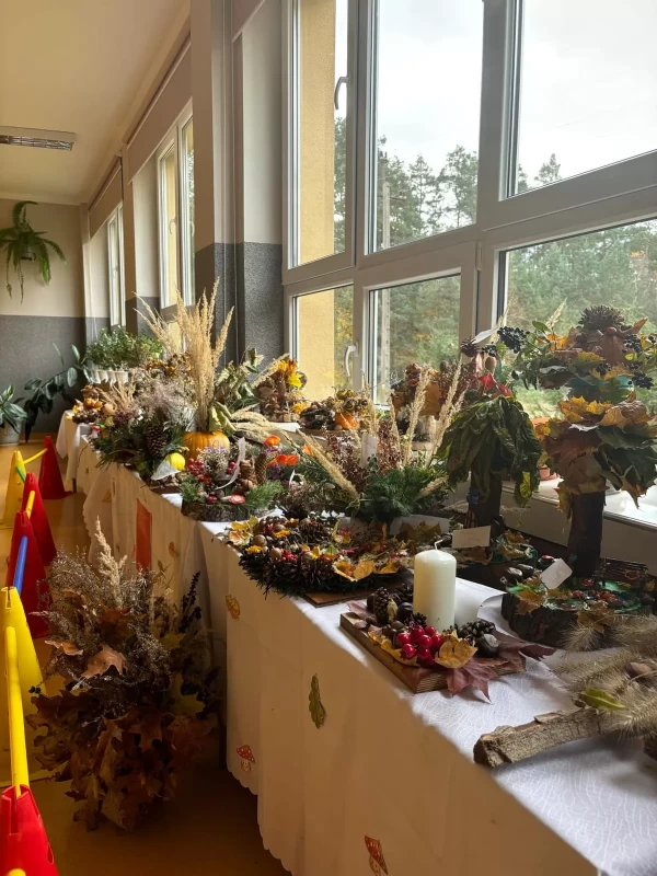 W konkursie wzięli udział uczniowie z przedszkoli i szkół podstawowych z terenu naszej gminy, którzy z zaangażowaniem przygotowali wyjątkowe kompozycje. Stroiki zostały wykonane z materiałów naturalnych, takich jak liście, kasztany, żołędzie, szyszki, suszone kwiaty oraz inne dary jesieni. Jury miało trudne zadanie, ponieważ wszystkie prace odznaczały się wysoką estetyką i oryginalnością.