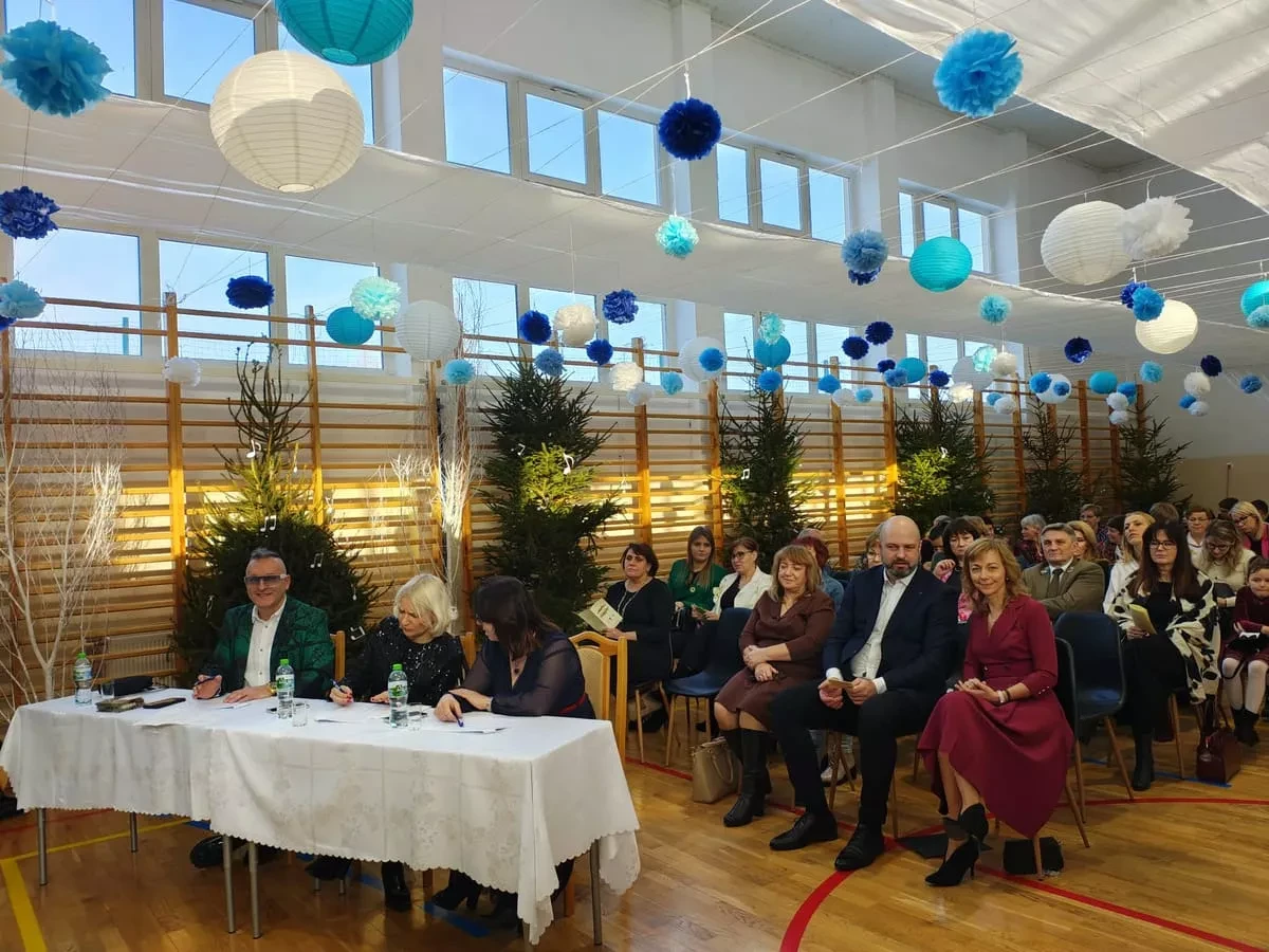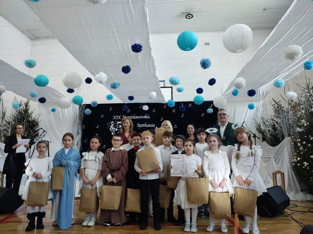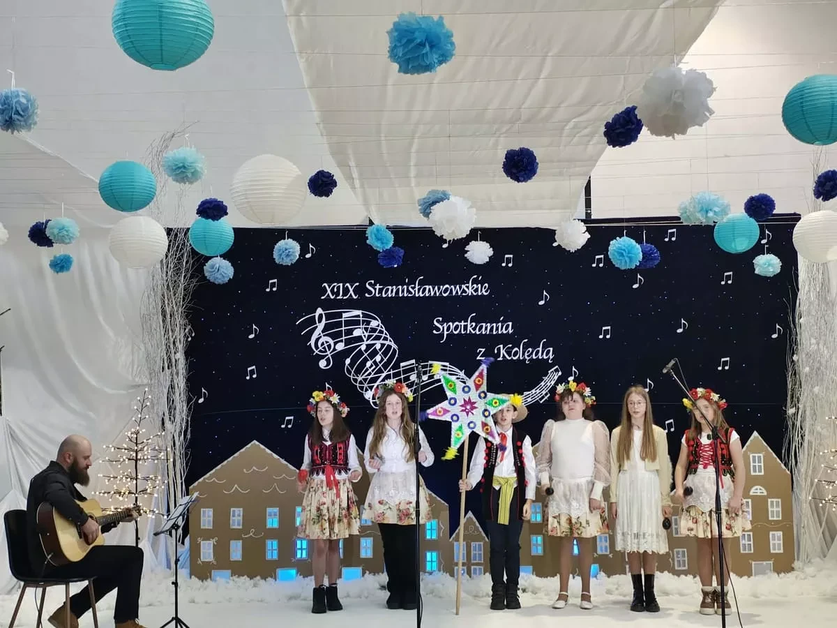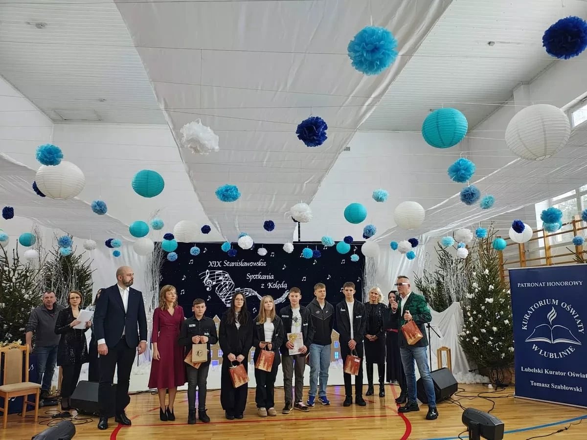 16 stycznia 2026 r. w naszej szkole było świątecznie, nastrojowo i gwarno. Wszystko za sprawą pięknej uroczystości - XIX Stanisławowskich Spotkań z Kolędą, które dostarczyły mnóstwa wzruszeń oraz wprowadziły magiczną, niepowtarzalną atmosferę. Przedsięwzięcie honorowym patronatem objął Kurator Oświaty w Lublinie pan Tomasz Szabłowski oraz Burmistrz Józefowa pan Roman Dziura, natomiast patronat medialny sprawowała Informacyjna Agencja Samorządowa. Naszą imprezę swoją obecnością zaszczyciło mnóstwo gości, wśród których byli: wicestarosta biłgorajski pani Beata Strzałka, Zastępca Burmistrza Józefowa pan Paweł Wiegan oraz radni powiatu biłgorajskiego: pani Barbara Wojciechowska oraz pan Henryk Paska.