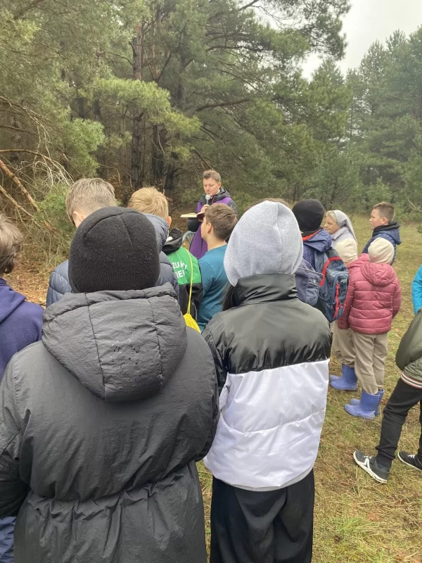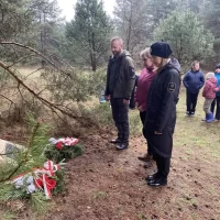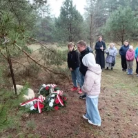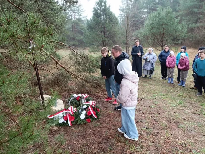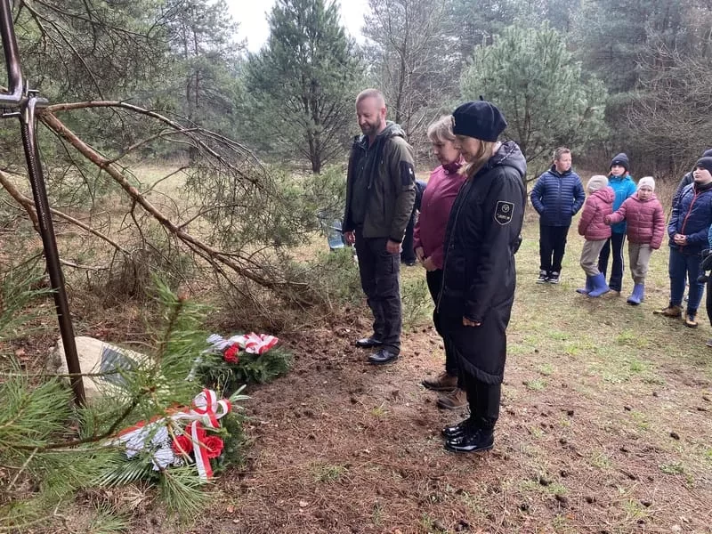 W deszczowy poniedziałek nasi uczniowie wraz z uczniami i nauczycielami z SP w Majdanie Nepryskim wzięli udział w pieszym rajdzie patriotycznym z okazji 80 rocznicy śmierci Żołnierza Wyklętego Ignacego Pytera ps. Murzyn. W tym celu udali się w okolice wzgórza Hołda do miejsca upamiętniającego śmierć partyzanta.