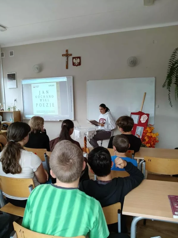 W naszej szkole odbyła się kolejna edycja ogólnopolskiej akcji Narodowe Czytanie, której celem jest popularyzacja czytelnictwa oraz przypomnienie najważniejszych dzieł polskiej literatury. W tym roku wspólnie czytaliśmy utwory Jana Kochanowskiego – wybitnego poety doby renesansu. Podczas wydarzenia uczniowie oraz nauczyciele czytali wybrane utwory poety. Szczególnie poruszające okazały się treny, w których autor wyraża swój żal po stracie ukochanej córki Urszulki. Dodatkową atrakcją był krótki film edukacyjny na temat życia i twórczości Jana Kochanowskiego, który został wyświetlony na początku wydarzenia. Film przybliżył sylwetkę poety, jego wpływ na literaturę polską oraz tło historyczne epoki, w której tworzył. Dzięki temu uczniowie mogli lepiej zrozumieć kontekst powstawania prezentowanych utworów.