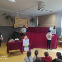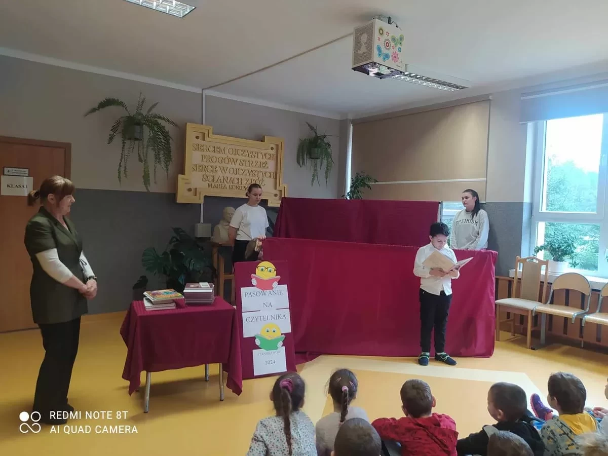 Najmłodsi uczniowie z dużym zainteresowaniem obejrzeli spektakl, zwrócili uwagę na grę starszych kolegów, starannie przygotowane kukiełki i zmieniające się dekoracje. Głośne brawa świadczyły, że przedstawienie wszystkim się podobało. Potem dzieci wysłuchały krótkich wierszyków oraz wypowiadały się na temat czytania i właściwego obchodzenia się z książką. Następnie uczniowie klasy I złożyli uroczyste ślubowanie i zostali pasowani przez Dyrektora Szkoły na czytelników.