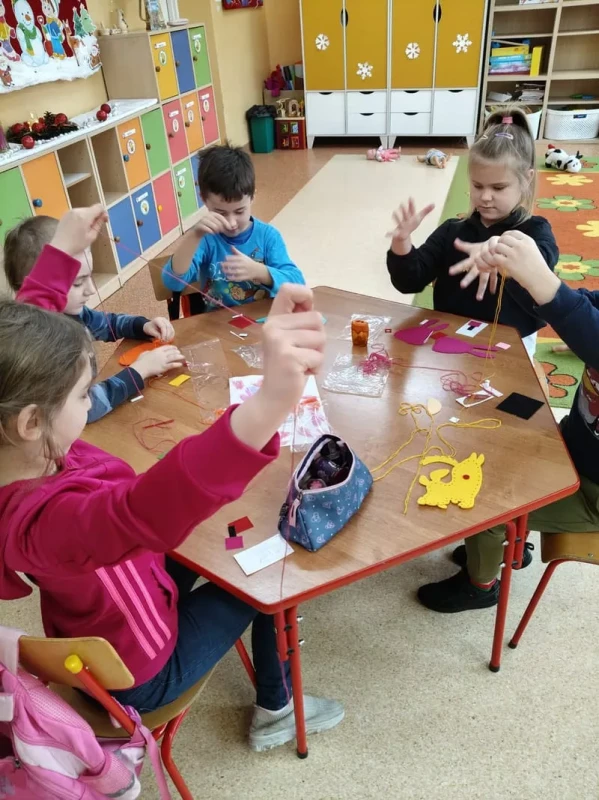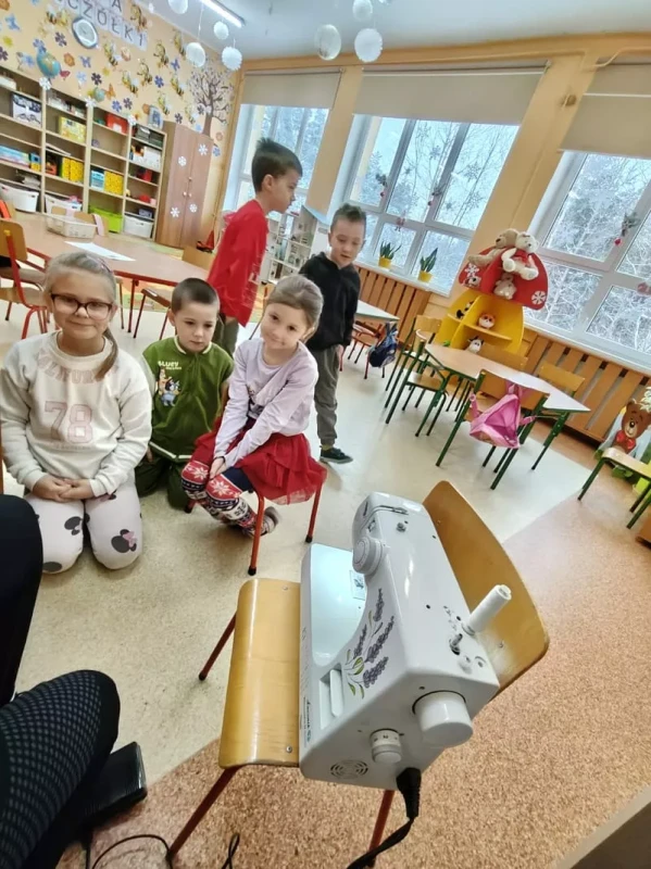 Przedszkolaki uczestniczyły również w zajęciach praktycznych. Przy pomocy nauczyciela zbudowały karmniki dla ptaków, poznając podstawowe narzędzia potrzebne do ich wykonania. Dzieci poznały także maszyny do szycia oraz samodzielnie uszyły swoje mini pluszaki. Zajęcia były ciekawe i angażujące, a zdobyte doświadczenia pomogły dzieciom lepiej zrozumieć otaczający je środowisko pracy.