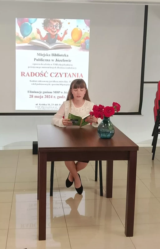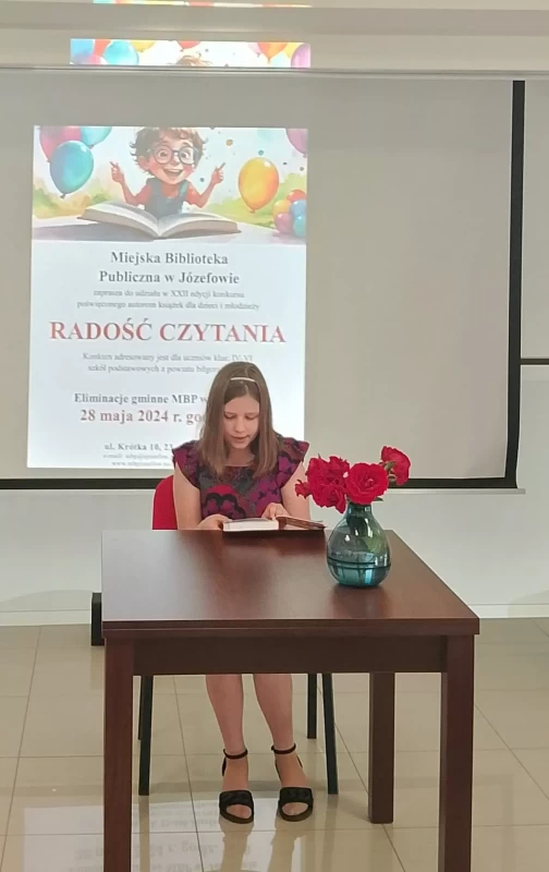 Dnia 28.05.2024r. w Miejskiej Bibliotece Publicznej w Józefowie odbył się konkurs czytelniczy "Radość czytania". Celem jest promowanie aktywnego czytania, rozbudzenie zainteresowania twórczością wybitnych pisarzy oraz rozwijanie umiejętności posługiwania się językiem ojczystym.