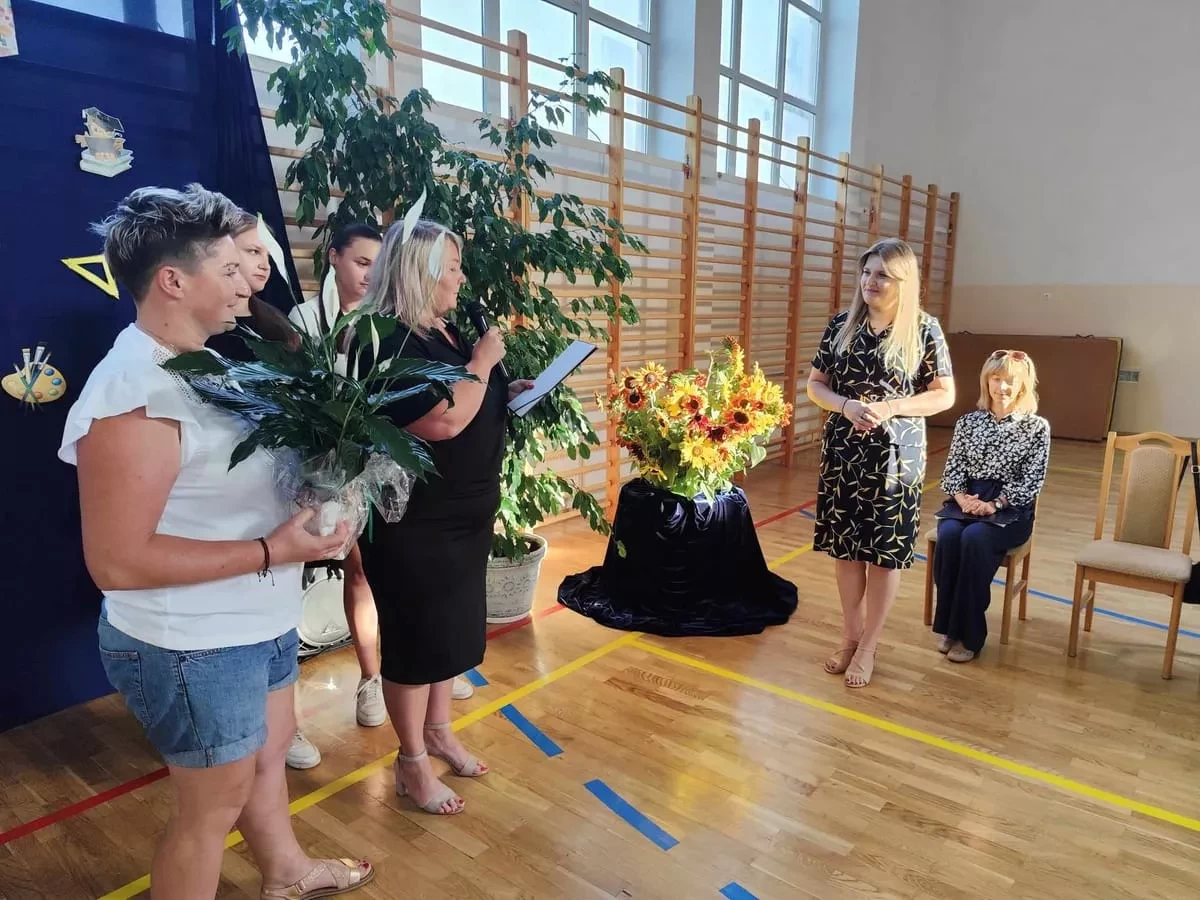 Na wstępie głos zabrała Pani Anna Adamczuk-Borys prezes Stowarzyszenia Pomocy Szkole, przywitała wszystkim zebranych i zapowiedziała zmiany jakie następują w nowym roku szkolnym 2024/2025. Podziękowała za współprace obecnej, odchodzącej Pani Dyrektor Marlenie Strzęciwilk i powitała nową Panią Dyrektor Katarzynę Traczyk-Surmacz życząc jej samych sukcesów i owocnej pracy. Pani Prezes przedstawiła również nowych nauczycieli dołączających do grona naszej szkoły tj. p. Karolina Berdzik, p. Agnieszka Blicharz, p. Justyna Galant i p. Kinga Momot.