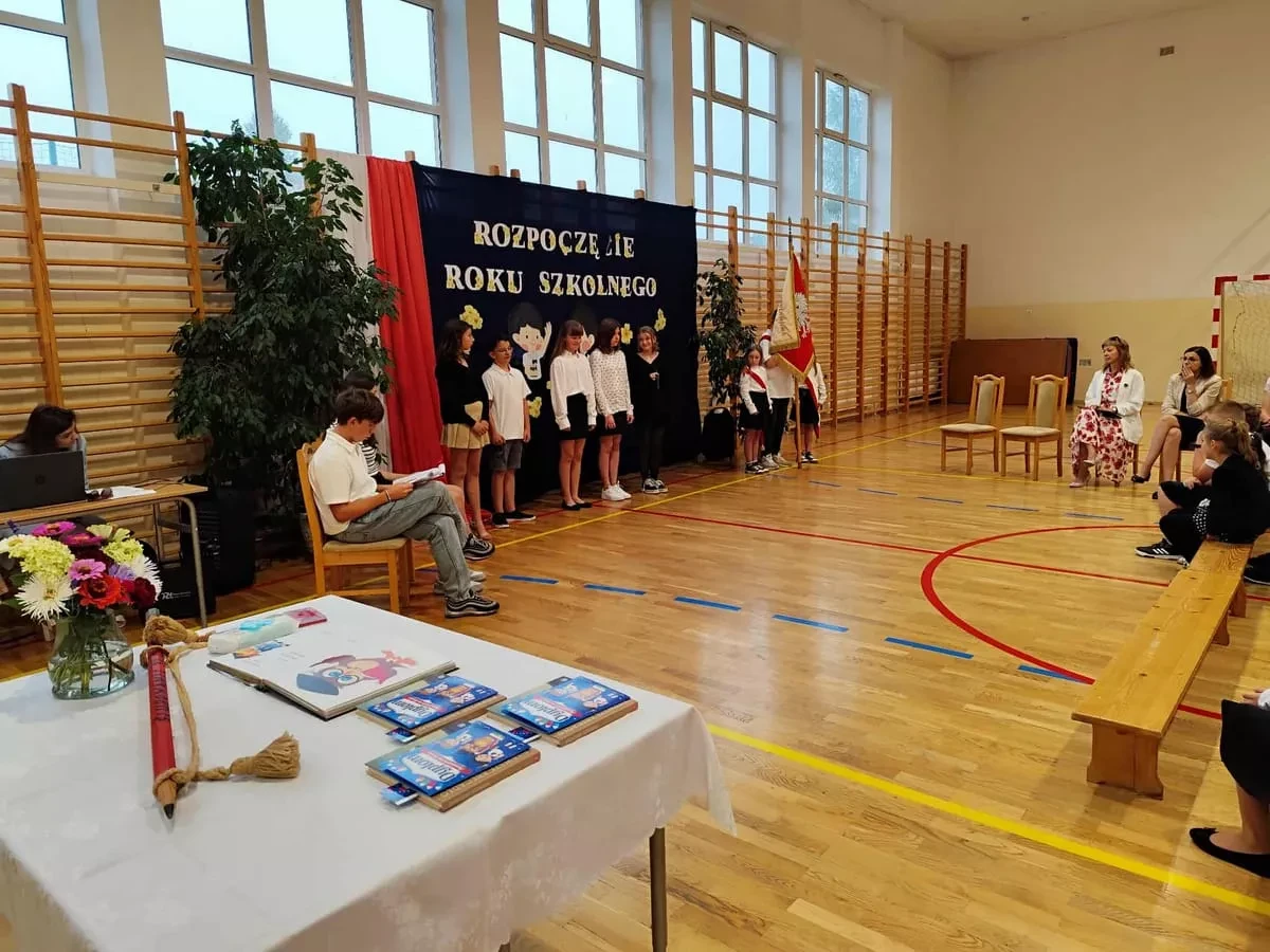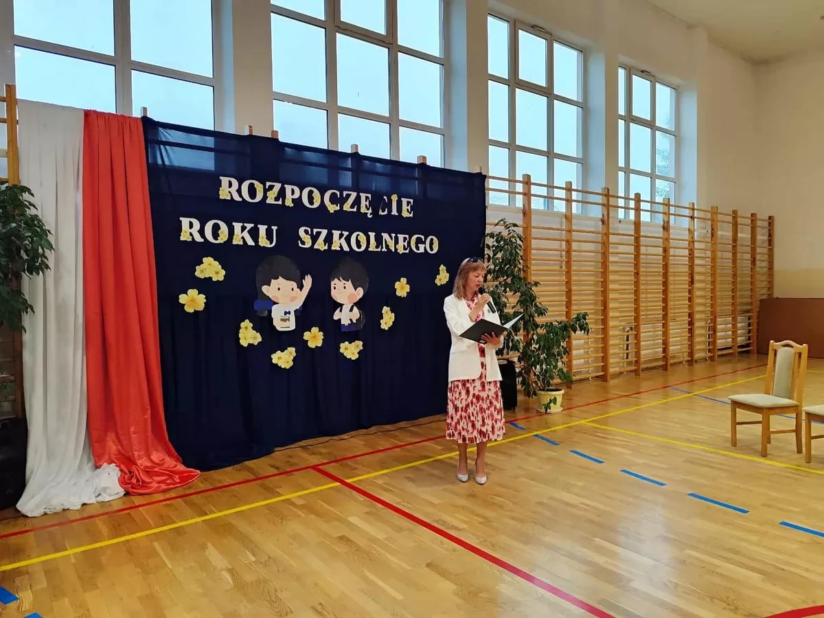 Tradycyjnie wydarzenie rozpoczęło się od wspólnego odśpiewania hymnu państwowego, po czym głos zabrała pani dyrektor, witając uczniów, nauczycieli oraz rodziców. Szczególne słowa powitania skierowała również do nowych nauczycieli którzy w tym roku dołączyli do grona pedagogicznego.