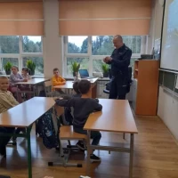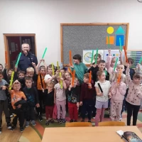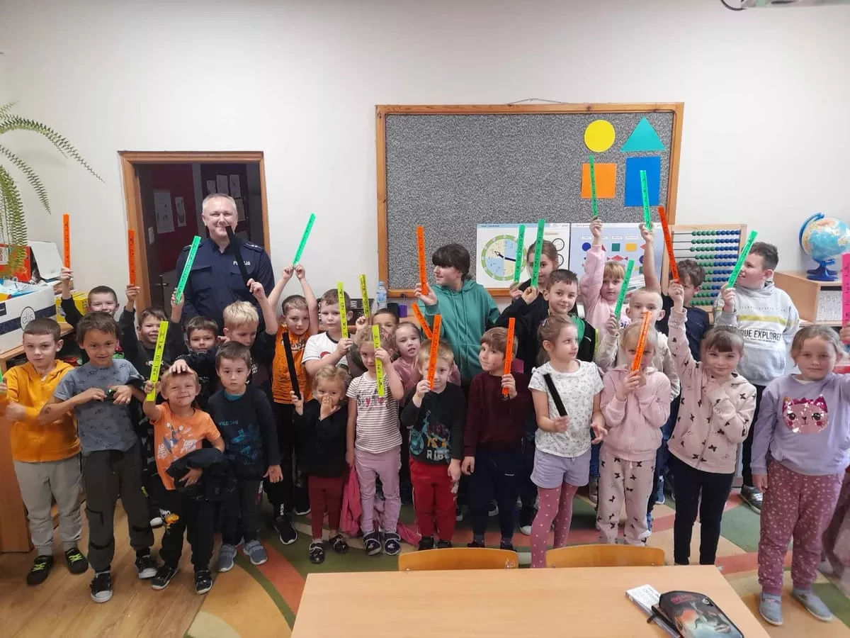 Wszyscy chętnie wysłuchali opowiadań o codziennej pracy policjanta. Spotkanie przebiegło w bardzo miłej atmosferze. Na zakończenie pan policjant wręczył wszystkim uczestnikom odblaski.
