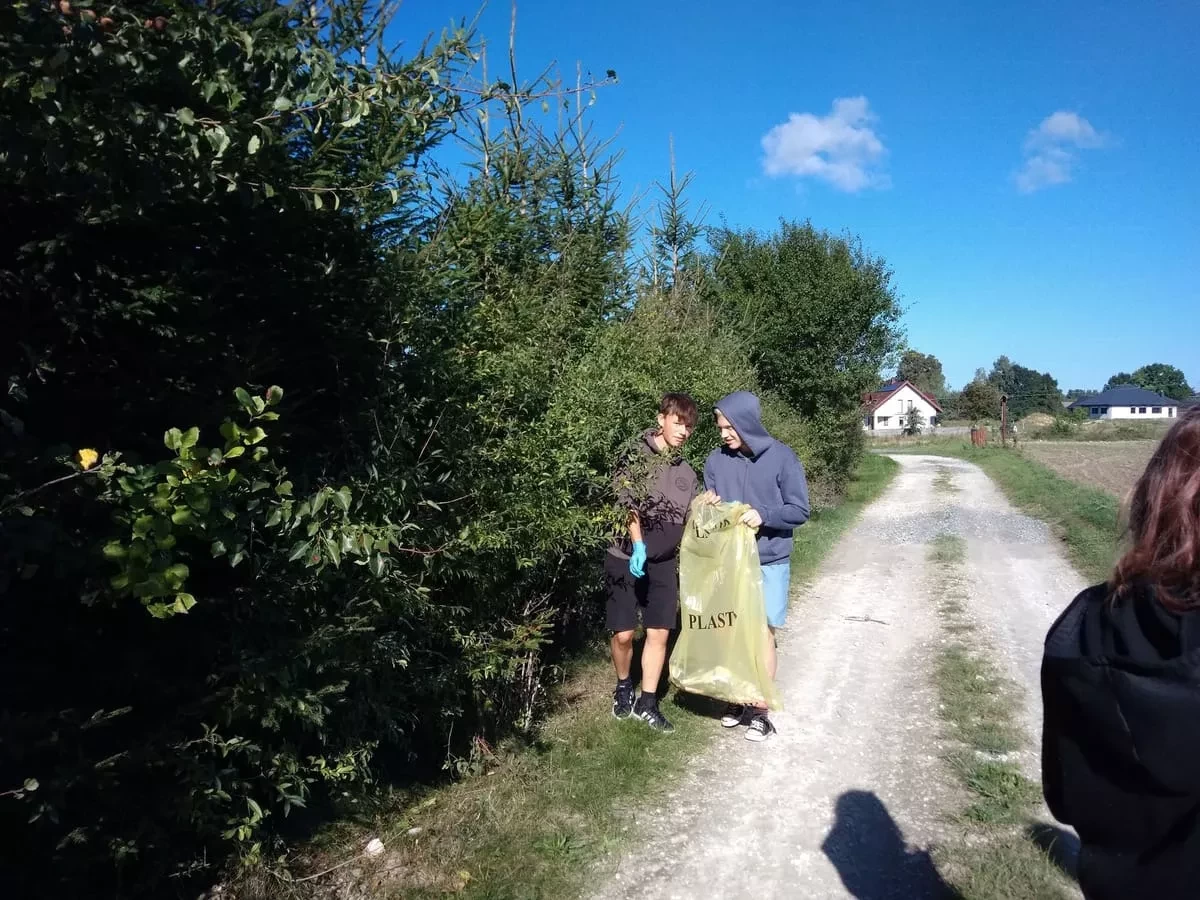 15 września uczniowie naszej szkoły zaopatrzeni w worki i jednorazowe rękawiczki po raz kolejny uczestniczyli w akcji ekologicznej - Sprzątanie Świata. Rozpoczęto ją pogadanką na temat bezpieczeństwa oraz głównego celu akcji, którym jest rozbudzenie świadomości ekologicznej uczniów i odpowiedzialności za środowisko naturalne. Dzieci sprzątały teren wokół szkoły, drogę w stronę Wzgórza Kamie oraz teren kaplicy. Najmłodsi uczniowie zbierali śmieci na terenie boiska szkolnego oraz pobliskiego lasu. Czynny udział w tym przedsięwzięciu uświadomił wszystkim, że należy dbać o swoje środowisko oraz czystość otoczenia. Akcja miała również na celu pokazanie, że rozwiązaniem problemu zaśmieconego środowiska nie jest tylko coroczna zbiórka śmieci, lecz głównie zmiana nawyków w codziennym życiu, segregacja i umiejętne gospodarowanie odpadami.