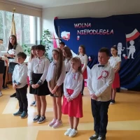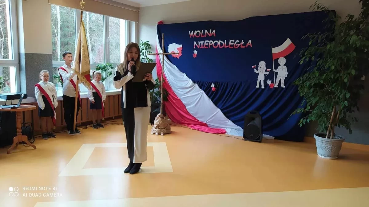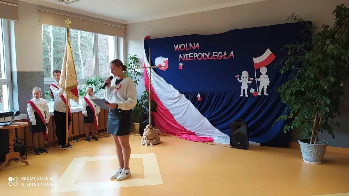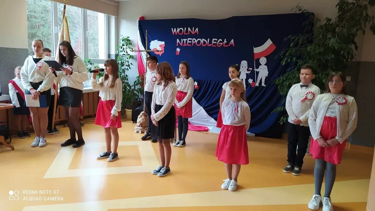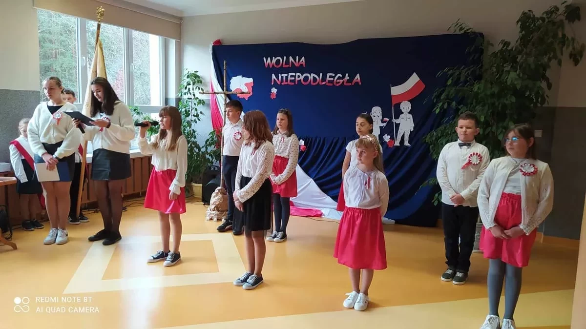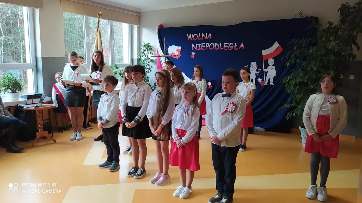 11 listopada to wielka data - symbol miłości, walki o wolność, symbol wiary i zwycięstwa To dla nas, Polaków, jedna z najważniejszych dat w kalendarzu. Właśnie wtedy obchodzimy Narodowe Święto Niepodległości. W tym roku mija 105 lat od tego ważnego wydarzenia. To właśnie 11 listopada 1918 r., po 123 latach zaborów, nasz kraj znów pojawił się na mapie Europy. Z tej okazji w naszej szkole odbyła się uroczysta akademia. Zebrani złożyli hołd wszystkim, którzy przed laty przelewali krew, byśmy mogli żyć w wolnym, niepodległym kraju. Uczniowie zaprezentowali program artystyczny, w którym przypomnieli najważniejsze momenty w dziejach narodu polskiego kroczącego ku wolności i niepodległości. Przyłączyli się również do akcji „Szkoła do hymnu”, pięknie odśpiewując hymn narodowy, dając tym samym wyraz szacunku do Ojczyzny, polskiej historii