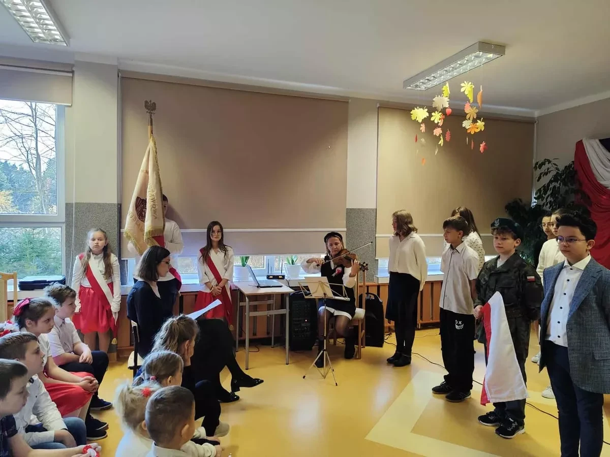 Uroczystość rozpoczęła się wspólnym odśpiewaniem „Mazurka Dąbrowskiego” w ramach ogólnopolskiej akcji „Szkoła do hymnu”. Występom towarzyszył podniosły nastrój i poczucie dumy z bycia Polakiem. Podczas akademii recytowano wiersze patriotyczne, śpiewano znane pieśni żołnierskie i narodowe. Uczniowie zaprezentowali się w strojach stylizowanych na mundury żołnierzy z czasów walk o niepodległość, co dodało uroczystości wyjątkowego charakteru. Całość uświetniła gra na skrzypcach, która wprowadziła wszystkich w refleksyjny nastrój.