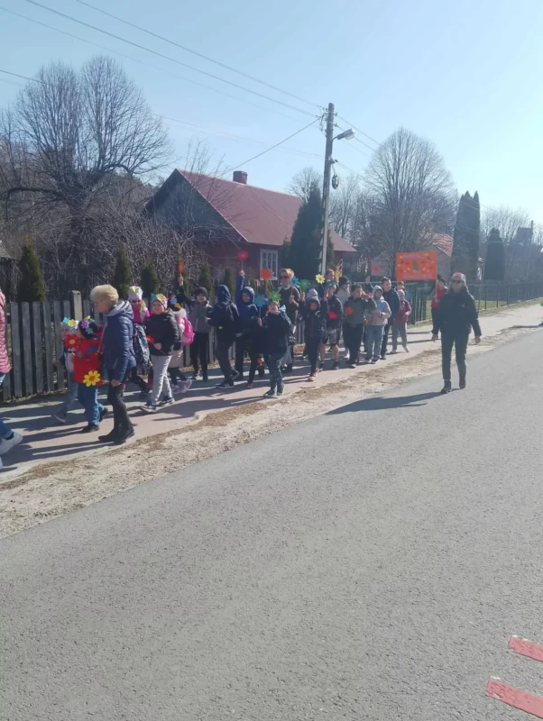 Wiosna to najpiękniejsza pora roku, dlatego jej pierwszy dzień jest radosnym i wyczekiwanym momentem dla wszystkich dzieci. 21 marca 2025 roku oddziały przedszkolne oraz klasy I-V szkoły podstawowej wyruszyły na spacer po okolicy. Piękna pogoda sprzyjała obserwacji oznak nadchodzącej wiosny oraz wspólnemu spędzaniu czasu na świeżym powietrzu.