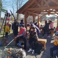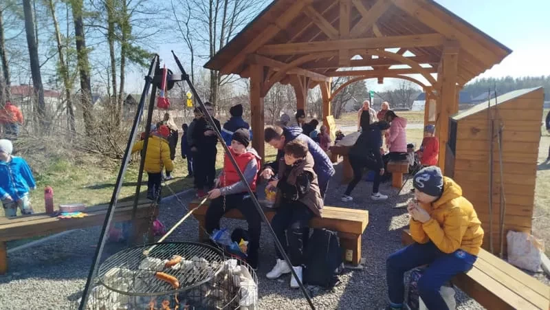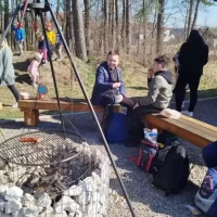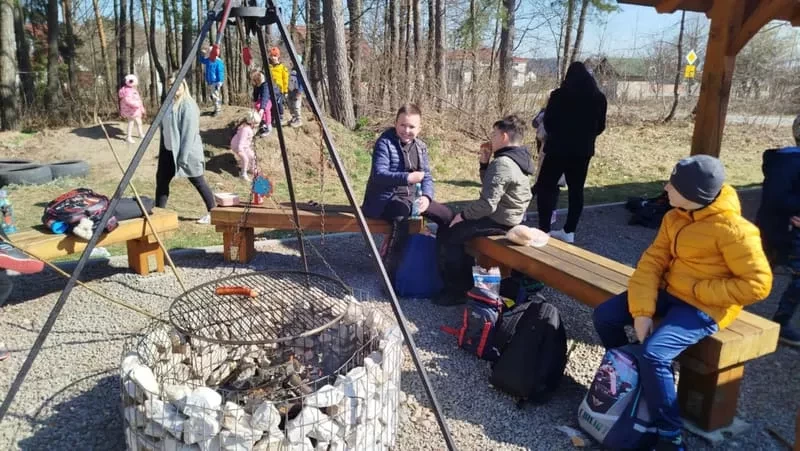 Zwieńczeniem wycieczki było starannie przygotowane ognisko. Przy ogniu dzieci uczestniczyły w różnorodnych grach i zabawach, które dostarczyły im wiele radości i śmiechu. Wszyscy bawili się znakomicie, ciesząc się nadejściem nowej pory roku.