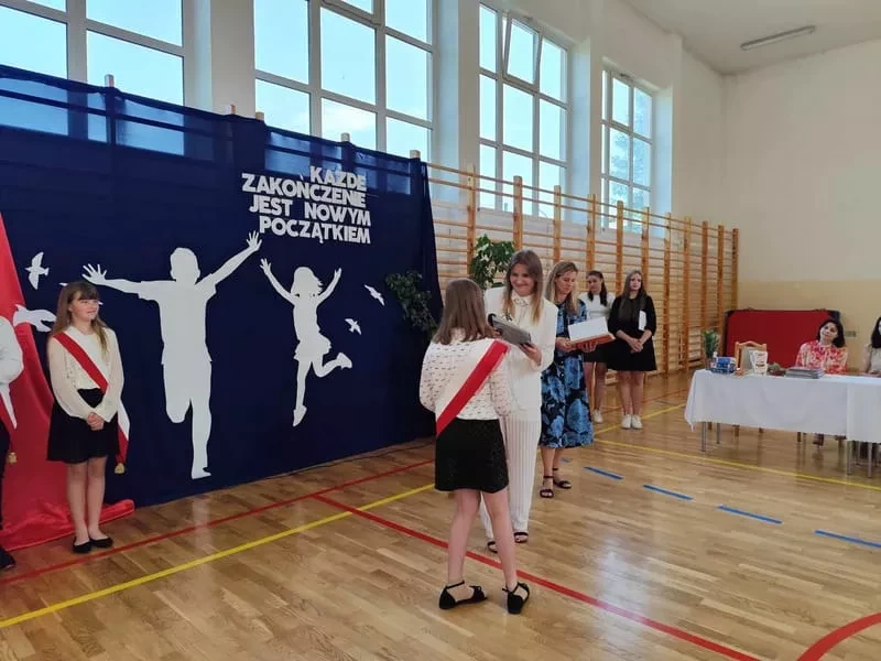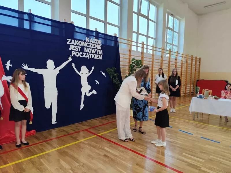21 czerwca 2024r. odbyło się uroczyste zakończenie roku szkolnego dla uczniów klas I-VII oraz pożegnanie uczniów klasy VIII. Dzień zakończenia roku szkolnego to dla każdego ucznia chwila niezwykle radosna, niosąca za sobą trud dziesięciu miesięcy nauki, rozpoczynająca jednak okres dwumiesięcznej zabawy, rozrywki i beztroski. W uroczystości udział wzięli uczniowie, nauczyciele, pracownicy obsługi i administracji oraz rodzice.
