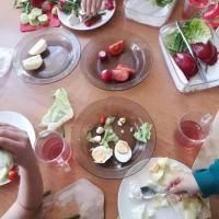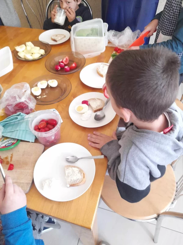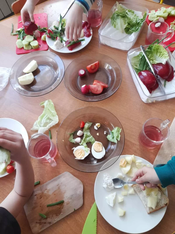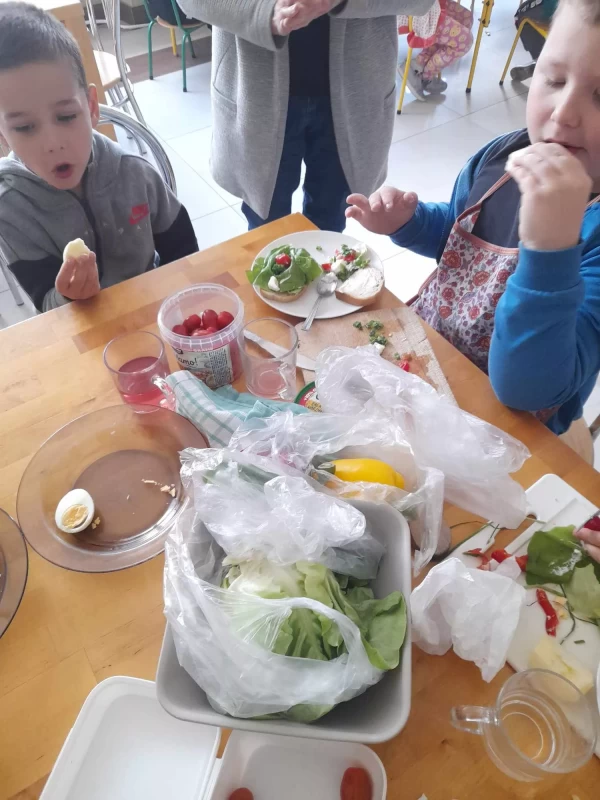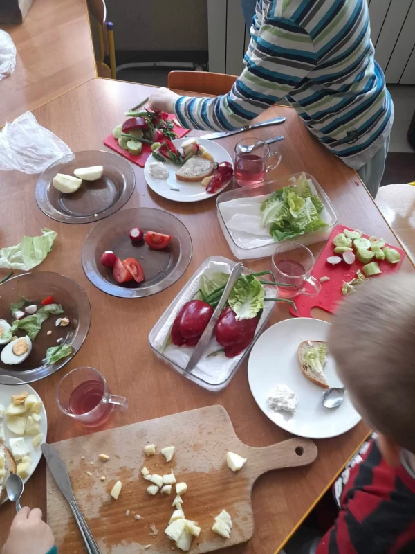 Po skończonym posiłku wspólnie posprzątali i byli gotowi na zajęcia.