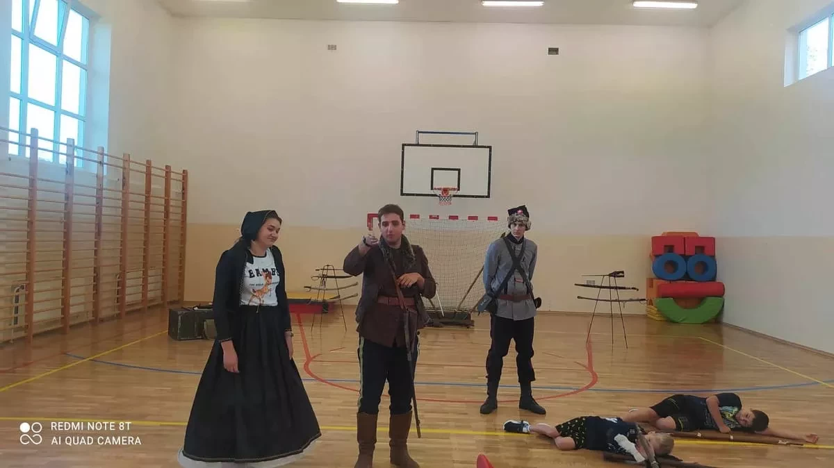 28.09.2023r. uczniowie naszej szkoły uczestniczyli w pokazie Grupy Artystycznej ,,Rekonstrukto”. Wydarzenie to było związane z 160 rocznicą wybuchu powstania styczniowego. Przedstawiona została również droga Polaków do odzyskania niepodległości i trudne czasy zaborów. Uczniowie mieli okazję wczuć się w atmosferę tamtych wydarzeń, zobaczyć stroje z minionej epoki oraz wcielić się w role powstańców. Była to żywa, ciekawa i pouczająca lekcja historii, która wzbudziła duże zainteresowanie uczniów. Wydarzenie zwieńczyła wspólna fotografia wszystkich uczestników.